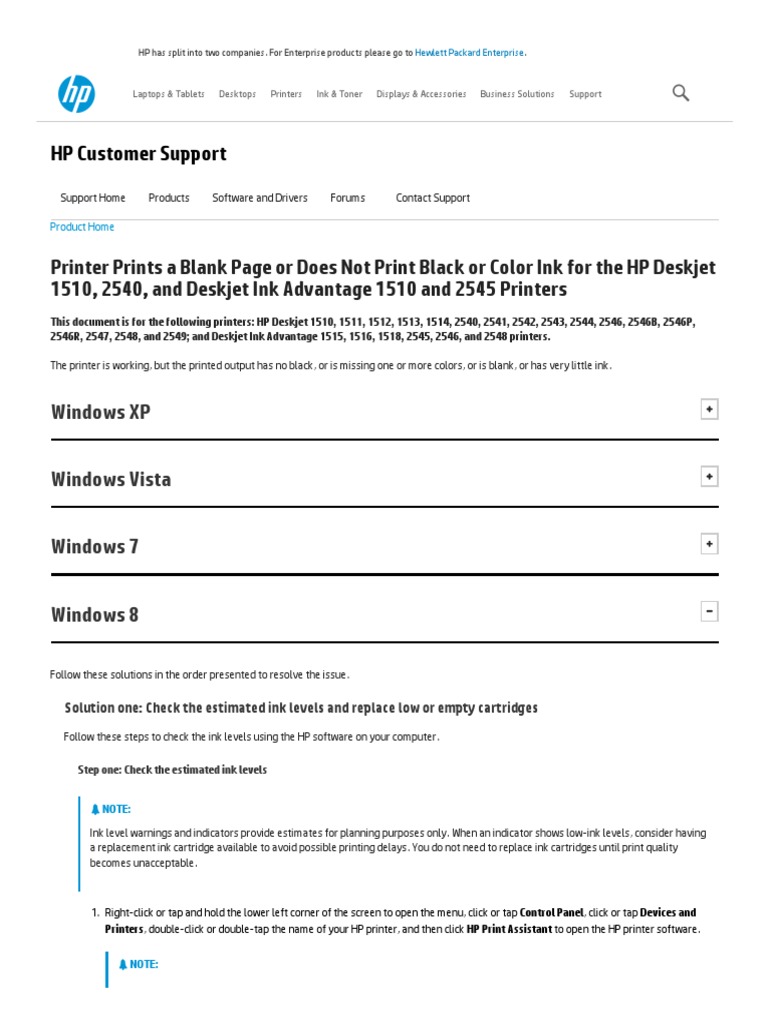 Printer Prints A Blank Page or Does Not Print Black or Color Ink For