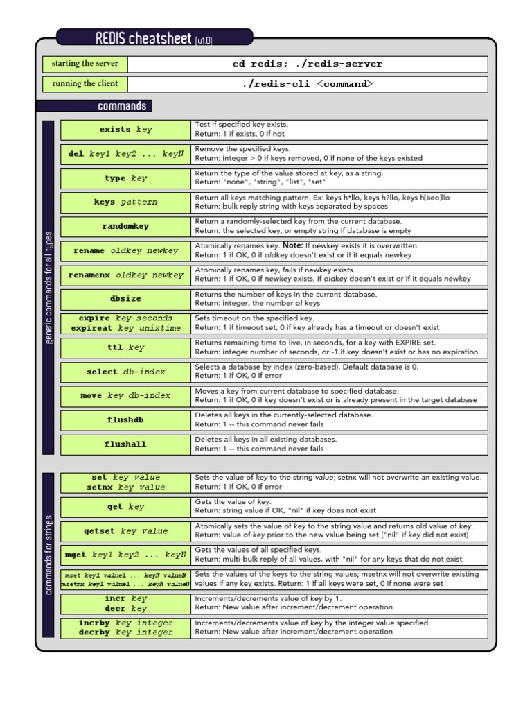 Redis cheatsheets This is a redis quick reference cheat sheet that