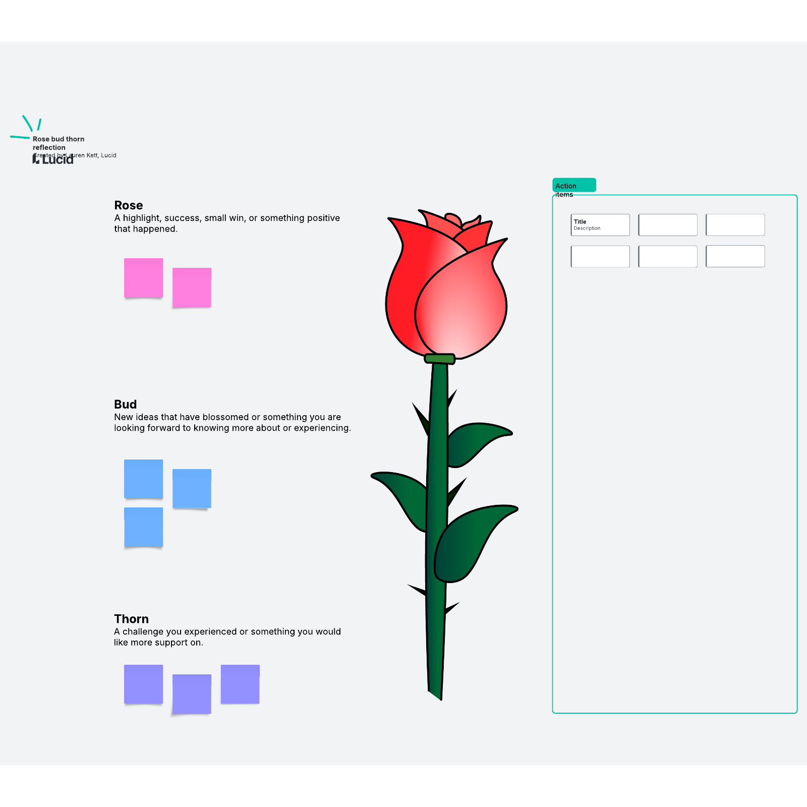 Rose, Bud, Thorn Retrospective Free Template Conceptboard