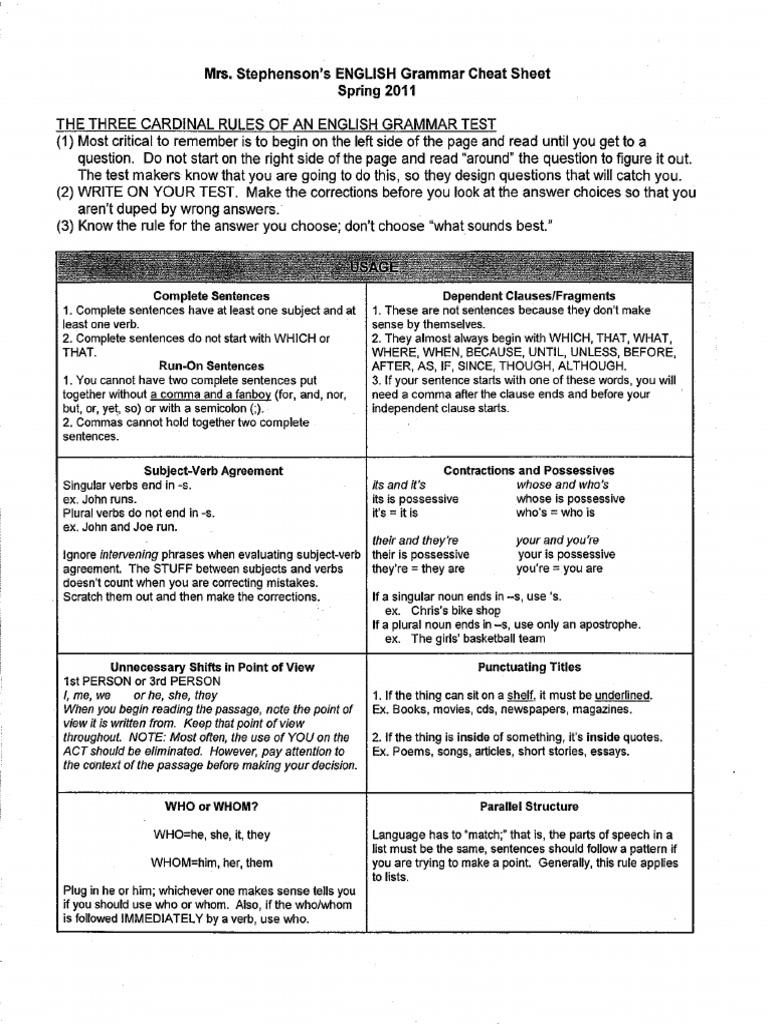 Sat Grammar Cheat Sheet Pdf Cheat Sheet
