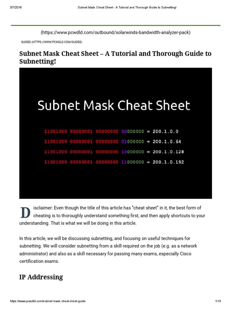 Mask Cheat Sheet PDF Computer Networking Networking Standards