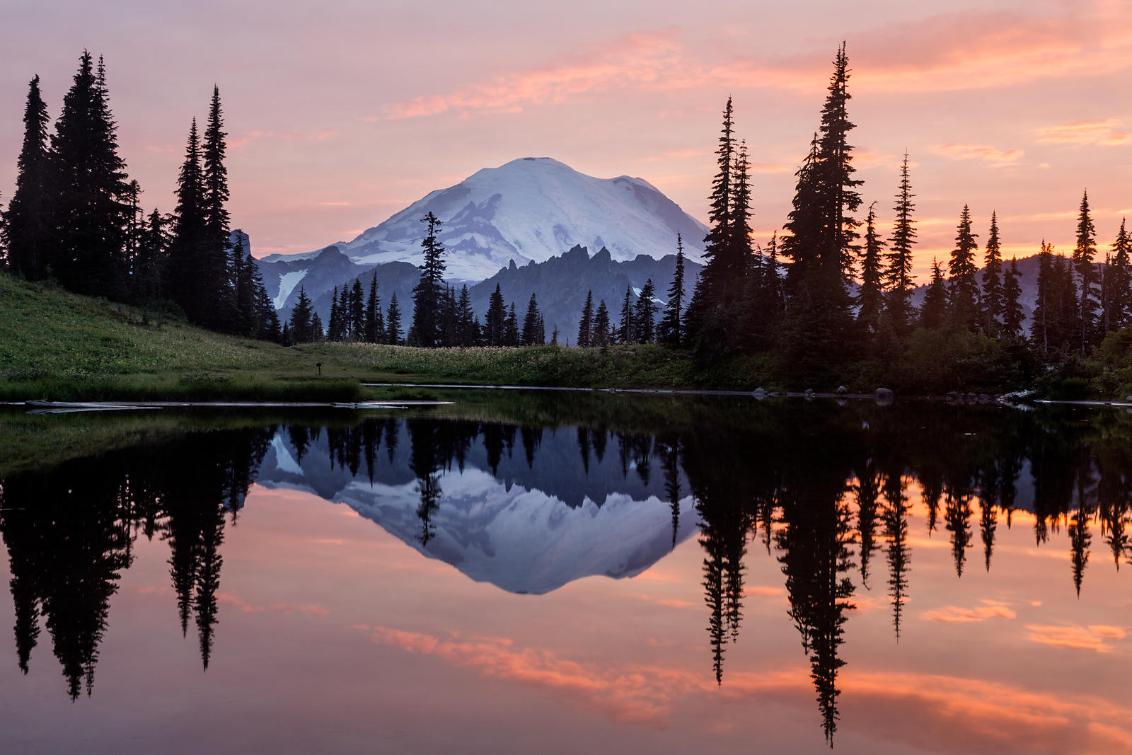 Tipsoo Lake Pink Sunset Mount Rainier National Park, Washington