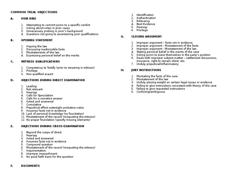 Web objections cheat sheet substantive objections relevance (401 & 402): Does not make any fact of consequence more or. Web texas trial objections cheat sheet. San francisco, california business owner.