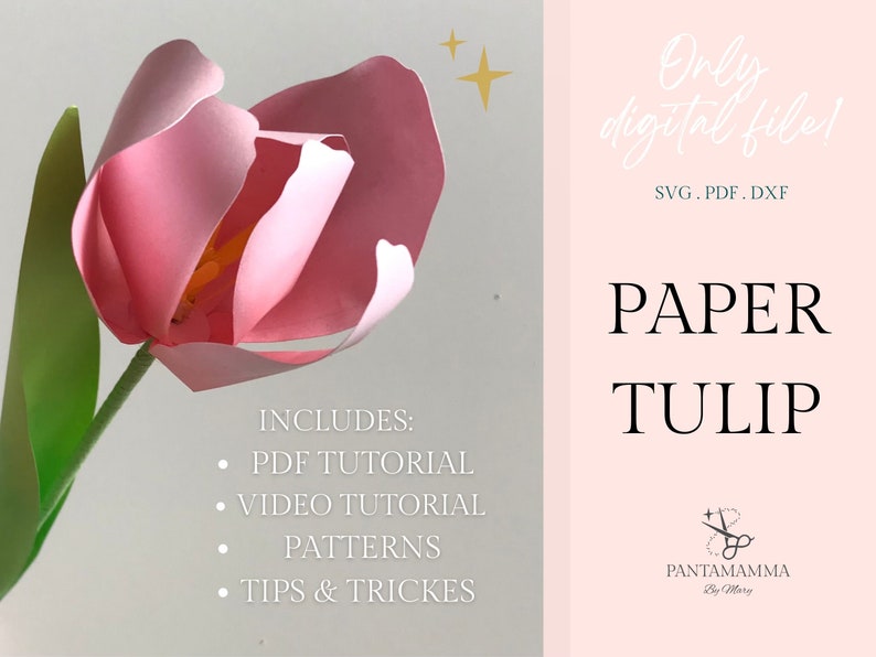 Paper TULIP Template Tulip Svg Dxf Pdf 3D Paper Flowers Etsy