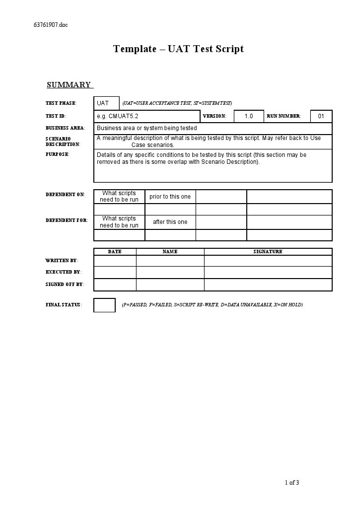 Uat Test Script Template Free Printable Templates