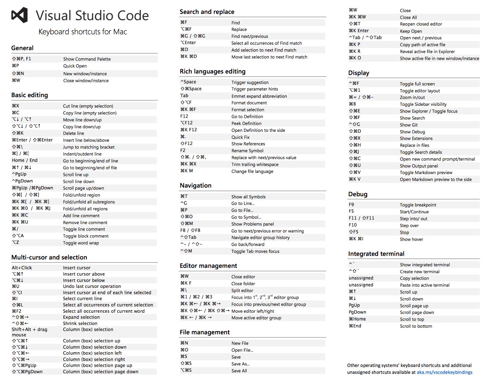Visual Studio Code Cheat Sheet Visual code studio shortcuts keyboard