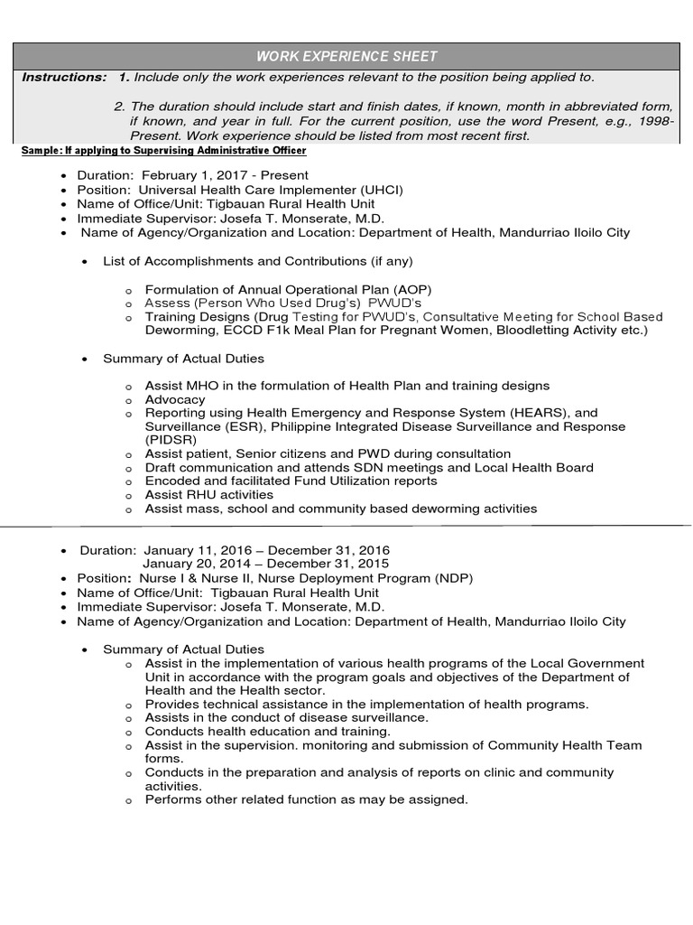 Work Experience Sheet - Web download the editable file for work experience sheet, one of the attachment to the personal data sheet (cs. Dear visitor, thank you for visiting the official.