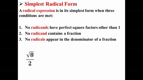 72 Simplest Radical Form. Show help ↓↓ examples ↓↓. √24 factor 24 so that one factor is a square number.