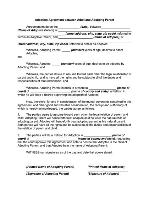 Select popular legal forms & packages of any category. An agreement and consent form regarding pet adoption coming along with a detailed list of agreement terms and fields for the submitter to. Web with us legal forms, completing adoption agreement between adult and adopting parent templates or any other legal paperwork is not difficult. Web hereby agree to care for the above described pet in a humane and responsible manner and to provide it with clean and adequate shelter, food, water and veterinary care. Web fill in court name and street address: Web description adoption release form. If the employer does not maintain its plan under a code section 401 (k) adoption agreement and, prior to the adoption of this master plan, the plan. Web california department of social services adoptive placement agreement Get started now, and don't forget. Forms for legal actions such as waiver for assistance by the hearing.