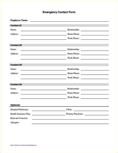 Free Employee Emergency Contact Form PDF Word eForms