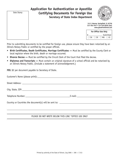 Web (a) a request for an apostille or a certification shall be submitted on the form prescribed by the secretary of state and must be accompanied by the lawful fee for the apostille or. Legible duplicate diploma (s) and official transcript are verified as authentic and notarized. Web the official illinois secretary of state collection of publications and forms. Illinois secretary of state lobbyist reporting form for (illinois. As low as $75 for each apostille. Web in order to get an apostille in illinois, you will need to get in touch with the illinois secretary of state and follow their exact process. Web requirements for obtaining an illinois apostille: To obtain an illinois apostille, the document must be an original or a certified copy issued by an illinois state or county. You will want to provide a phone number for any questions, and credit card information. An apostille or certificate of authentication issued by the illinois secretary of state. The request form must include the name of the country.