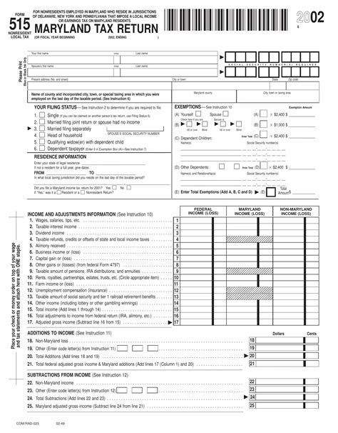 Maryland Form 515. Web maryland income tax return form 515 for nonresidents employed in maryland who reside in jurisdictions of delaware, new york and pennsylvania that impose a local. Web form 515 requires you to list multiple forms of income, such as wages, interest, or alimony.
