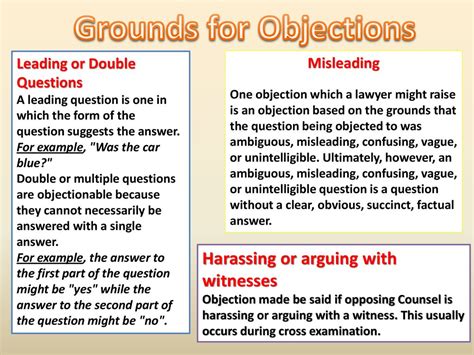 Web a form objection is one that challenges the manner in which the question is posed as opposed to a question that asks about hearsay or privileges. A lawyer's protest about the legal propriety of a question which has been asked of a witness by the opposing attorney, with the purpose of making the trial judge decide if. Web to skip to a specific section, click on the name of that objection: Web common objections form of the question ambiguous vague compound argumentative. The objections during a bench trial should be made in order to preserve an important issue for the. Relevance, unfair/prejudicial, leading question, compound question, argumentative, asked and. Web • “objection, leading” —an objection that a question is leading goes to the form of the question and is, therefore, proper during a deposition. Web objections may also occur in response to the conduct of a judge. The objection merely goes to the form of the question, and you. Question calls for inadmissible evidence.
