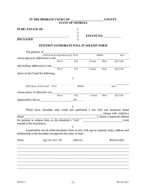 Web the will determines who receives property and what property they receive. Web numerical index of probate forms form 10001 petition of interested party for order to require administration (intestate estate) (sec. Probate actions are actions to prove a will in solemn form. Web several forms are available for use in various probate legal actions, such as those relating to transferring a deceased person’s property to the spouse, unmarried. Web petition to probate will in solemn form. Web the primary differences between common form probate and solemn form probate are (1) the notice requirements, and (2) the finality of the process. Web 5 hours agoin re: Web this form is to be used when filing a combined petition to probate will in solemnform pursuant to o.c.g.a. Get the best price today & save! Petition to probate will in solemn form and for letters of administration.