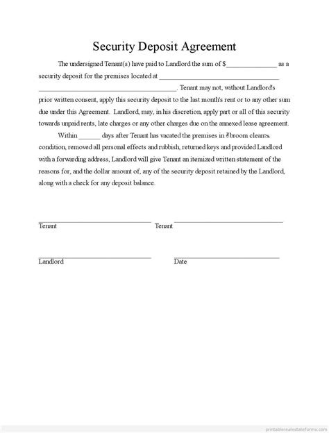 security deposit agreement Contract template, Real estate forms