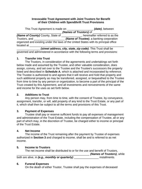 Web 3 min read dec 01, 2022 a spendthrift trust is a type of trust that regulates a beneficiary’s access to the funds or assets held within the trust account. It serves as a protection mechanism against bad spending habits, as well as creditors. A spendthrift trust also protects the beneficiary from creditors, since the assets are owned by the trust rather than the. Web complete spendthrift trust forms online with us legal forms. Web a spendthrift trust is a type of trust that limits your beneficiary’s access to assets. It’s an important estate planning tool that can help guarantee your beneficiaries are taken care of, while simultaneously ensuring your assets are distributed according to your specific terms. Web a spendthrift trust is a type of property control trust that limits the beneficiary's access to trust principal. This restriction protects trust property from: Web there are three wills and trust documents in this product that can be used for clients with children with special needs. This product is in both pdf and microsoft word format. Spendthrift trusts help ensure that beneficiaries.