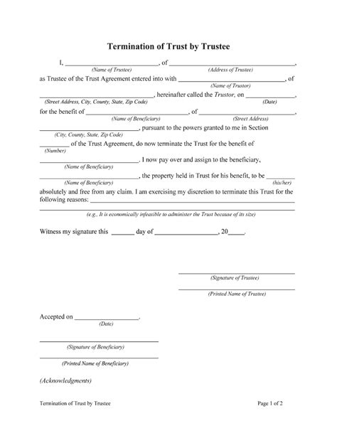 Termination Of Trust Form. You can find basic trust revocation forms online for free, and these can be all you need if you have a simple trust. In this form, the trustee had been given the authority to terminate the trust.