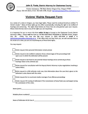 Victims Rights Form. Intended users of this form: Crime victims, law enforcement, prosecutors, courts, probation officers, and custodial officers.