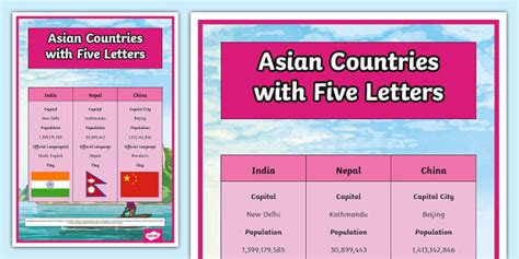 Countries With Five Letters. Which country names have 5 letters in them? Web there are 26 countries (including territories) with 5 letters in their name.