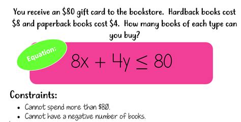 Constraints Math Example. Y = 65x where x can be any real number, including negative values. If y = 65x is.