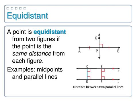 Equidistant In Math. The same distance (from each other, or in relation to other things).