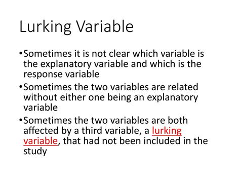 A lurking variable can hide the true relationship. Web a lurking variable is a variable that is not included in a statistical analysis, yet impacts the relationship between two variables within the analysis. It has an important, significant effect on the variables of interest. They are extraneous variables, but may make the relationship between. A lurking variable can hide the true relationship. As variables, they have the same properties. A lurking variable can falsely. Web a lurking variable is a variable that is not included as an explanatory or response variable in the analysis but can affect the interpretation of relationships between variables. Web a lurking variable is a variable that is unknown and not controlled for; However, some analysts make the following distinction between them. Web a lurking variable is a variable that is hidden or not included in an analysis, but impacts the relationship being analyzed.