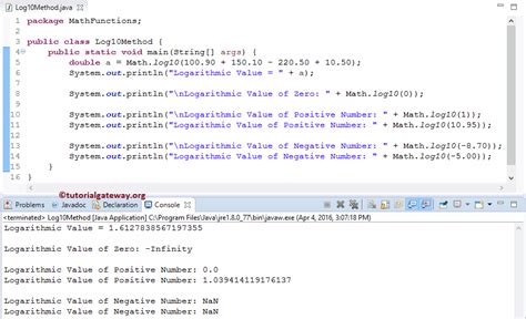 Web jdk1.0 field summary method summary methods inherited from class java.lang. Object clone, equals, finalize, getclass,. The java.lang.math.log () is used to find out the logarithmic value of any number. Web java math.log () method.