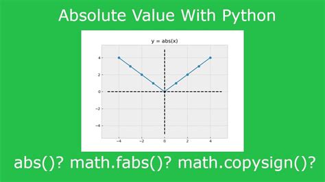 Python Absolute Value Math. Web syntax abs ( n ) parameter values more examples example return the absolute value of a complex number: X = abs(3+5j) try it.