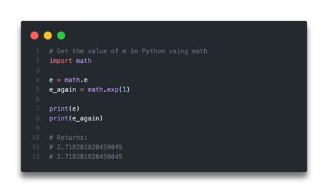 Python Math E. Web the numpy version has the advantage of using vectorisation when using numpy arrays. Web python math.e constant math methods example get your own python server print the euler's number: