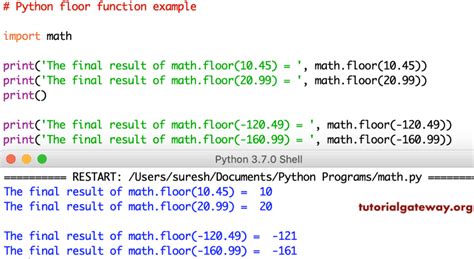 Python Math Floor. If x is not a float, delegates to x.__floor__,. The math.floor () method rounds a number down to the nearest integer, if necessary, and returns.
