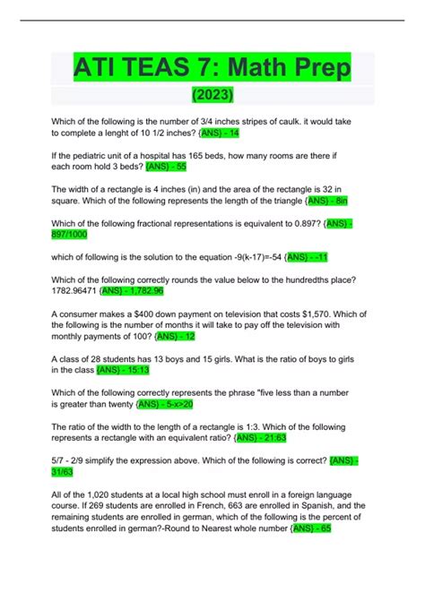 ATI TEAS 7 Math Course NurseHub
