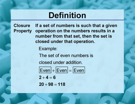 What Is Closure In Math. Web closure is when an operation (such as adding) on members of a set (such as real numbers) always makes a member of the.