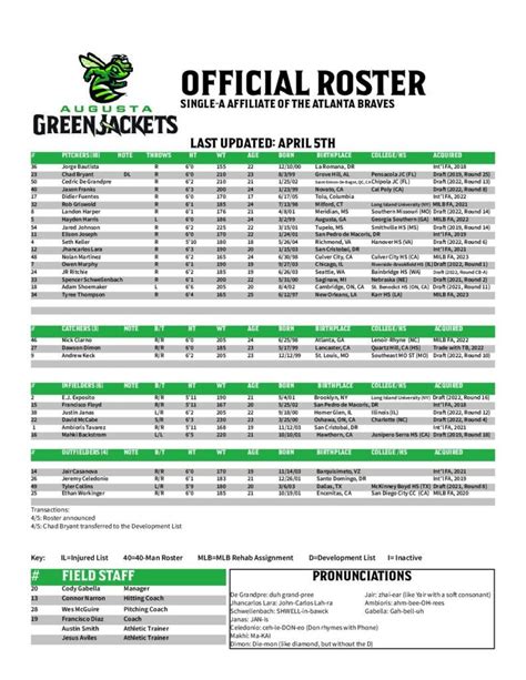 Augusta Greenjackets Roster. The team has arguably the most. 6' 0 coaching staff the official site of minor league baseball web site includes features, news, rosters, statistics, schedules,.