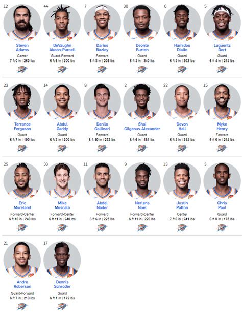 Web check out the current oklahoma city thunder roster and learn more about your favorite players with access to bios, photos and. The 2019 oklahoma city thunder roster for the nba regular.