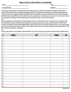 ABA Sports Official Softball Team Roster Form 2010 Fill and Sign