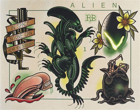 ALIENS Traditional Tattoo Flash Sheet Etsy