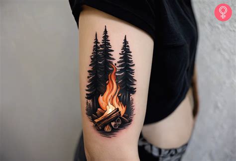 Camp Fire Tattoo. One of the best camping tattoos if you love spending time around the fire at the end of the night!. Feel free to toss a log into the fire with a trending campfire tattoo.