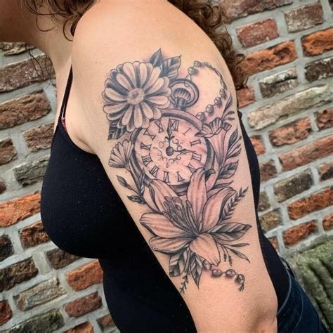 Clock Flower Tattoo. Web the symbolism and aesthetic of the flower clock tattoo can guide the placement, ensuring that it complements. Web a clock flower tattoo is a creative and unique tattoo design that combines the classic imagery of a pocket.