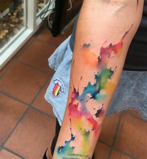 Watercolor splatter tattoo Splatter tattoo, Arm tattoos color, Color