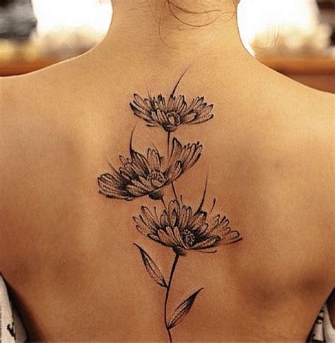Awesome blackandwhite daisy flower tattoo on back