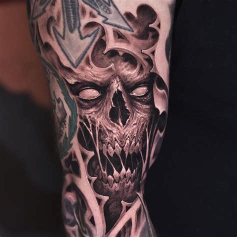 Pin by Logan on тαттσσ Skull sleeve tattoos, Evil tattoos, Skull tattoos