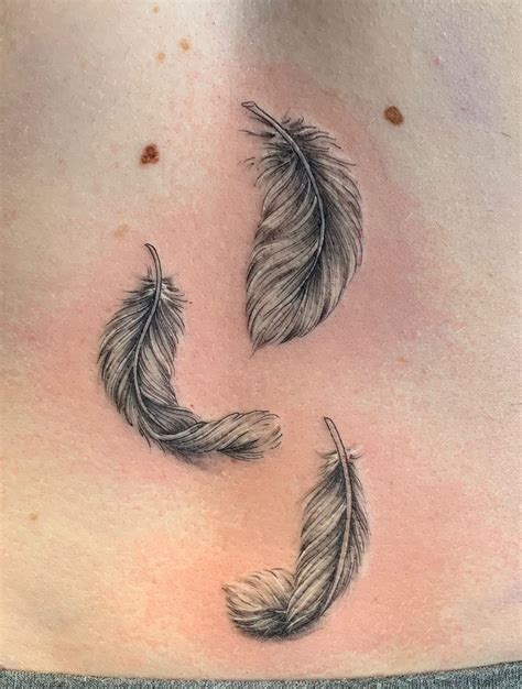 Falling Feather Tattoo. Web while some bird tattoos are chosen for their choice and colorful feathers, a single fallen feather tattoo may be symbolic of loss,.