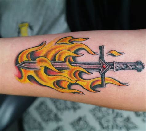 Fire Sword Tattoo. Web we’ll explain all the possible sword tattoo meanings, symbolism, and cultural and sword differences. From small to big, simple to intricate,.