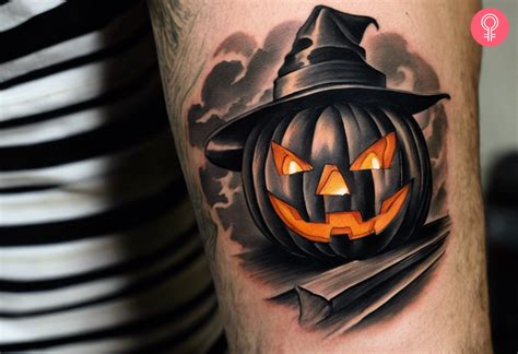 Jack O'lantern Tattoo. A classic grinning pumpkin with. Lady with umbrella jack o’lantern tattoo the tattoo showcases a striking image of a mysterious woman holding an umbrella.