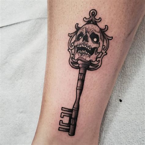 Key skull tattoo by Tabitha Hammercheek Black and grey tattoos, Ink