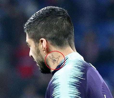 Luis Suarez Tattoo. Web barcelona star luis suarez gets neck tattoo of his iconic celebration. Luis suarez has got new ink, and the design.