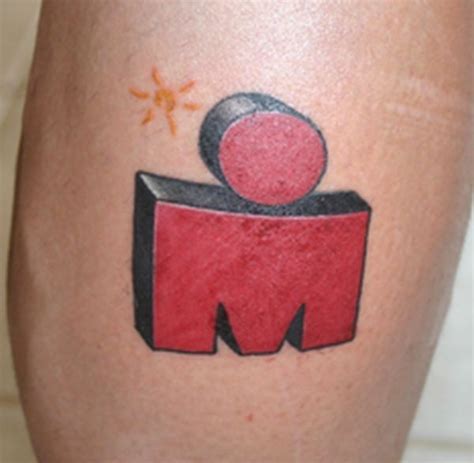M Dot Tattoo. This looks like a thick ‘m’ with a red dot over it. History of the ironman you might be.