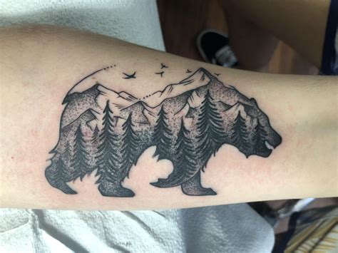 Mountain Bear Tattoo. Web this tattoo idea involves creating a grizzly bear silhouette and filling it with a scenic image of a mountain, forest,. Find bear mountain tattoo stock images in hd and millions of.