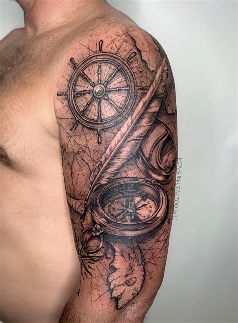 Nautical Map Tattoo On Half Sleeve Tattoo Designs, Tattoo Pictures