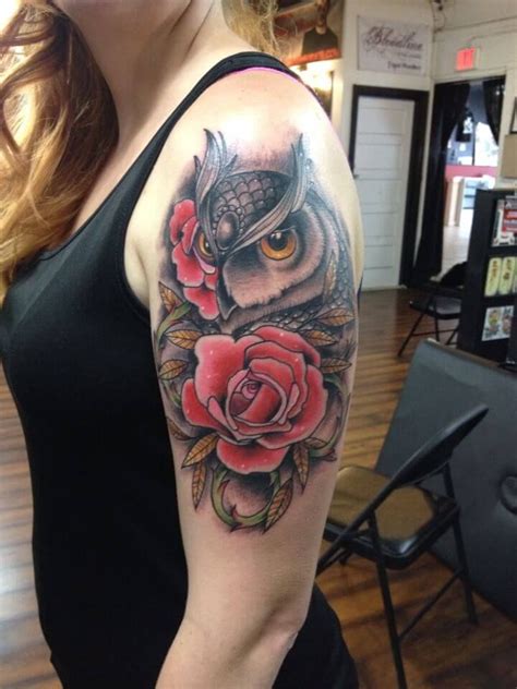 For this reason, they go well with pretty much everything, including owls. Owls are often regarded as mysterious. Web owls and flower tattoos. Web roses are staples in the tattoo community.